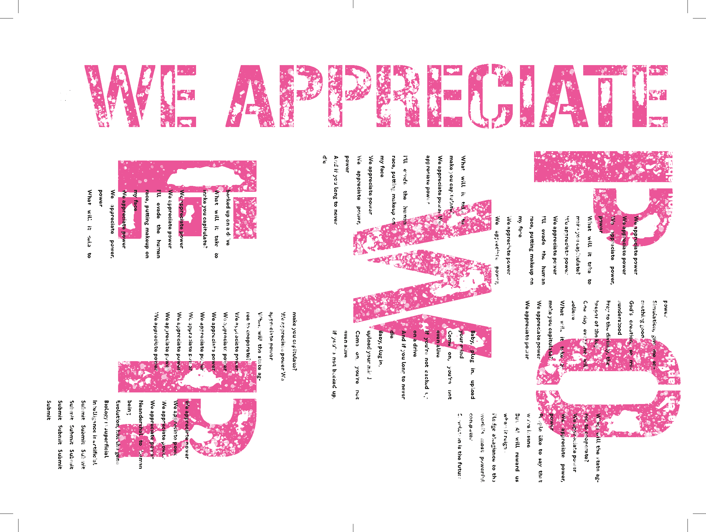 PERFECT ME IN AN IMPERFECT WORLD ist ein Songbuch, in dem rebellische Lyrics aus dem Punk-Genre und ähnlichen Abwandlungen typografisch angemessen angewandt werden.